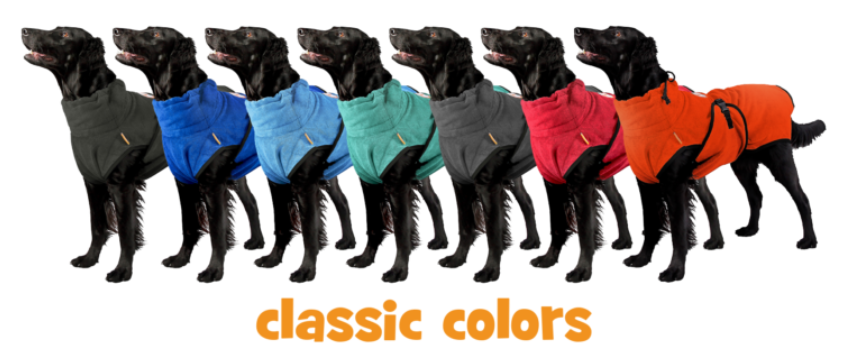 Onze Chillcoats hebben verstelbare banden voor buik, rug en staartopening. Met onze goede pasvorm zal onze hondenbadjas nek, buik en rug van uw hond bedekken.